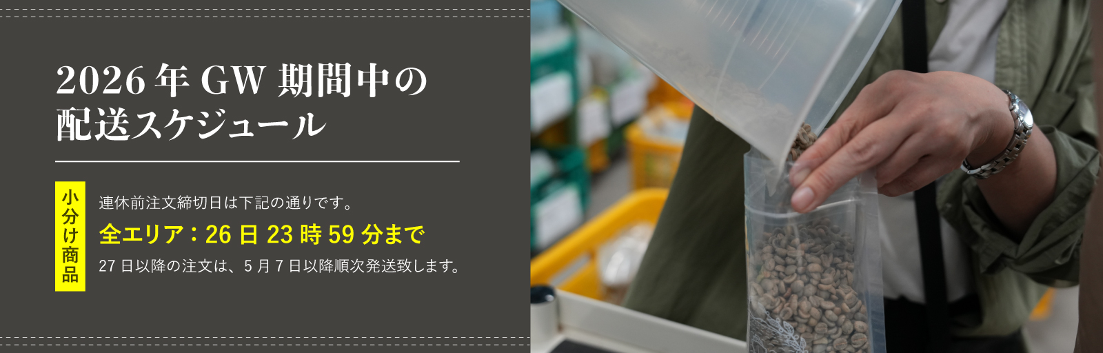 - 2026-04-06 News 【重要】2026年GW期間中の配送スケジュールのご案内