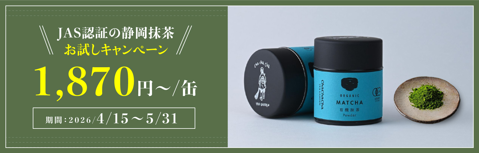 - 2026-04-15 News JAS認証の静岡抹茶 お試しキャンペーン中!