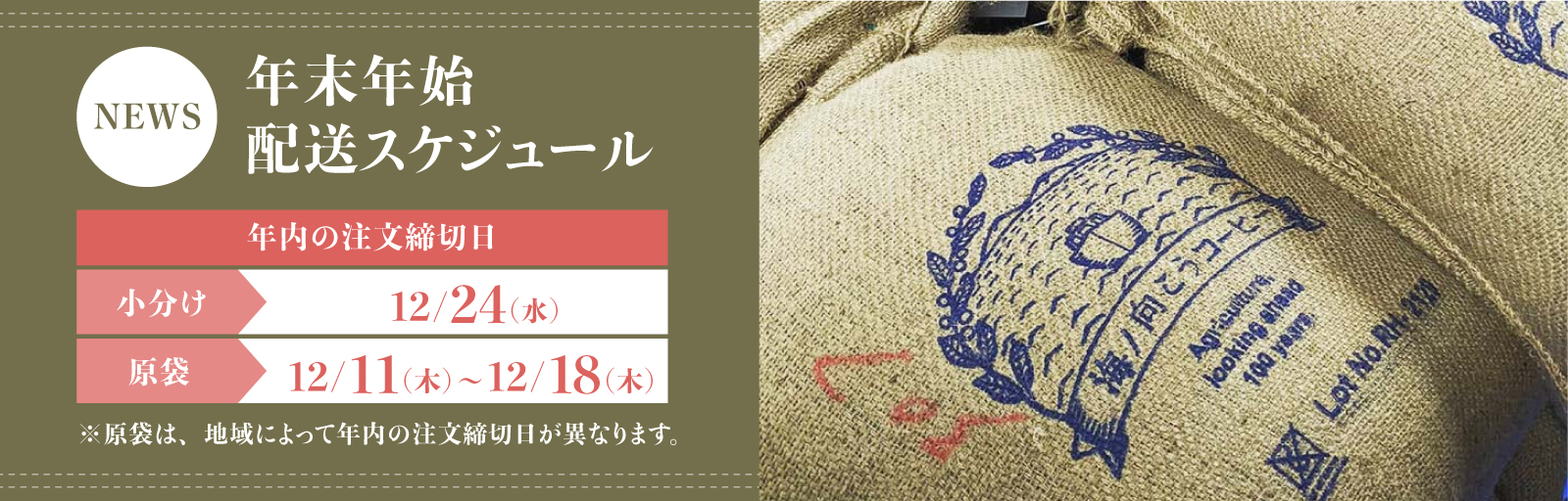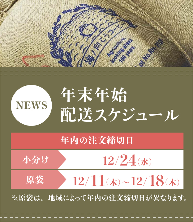 年末年始は配送業者の都合により、通常の配送スケジュールと異なる部分がございます。