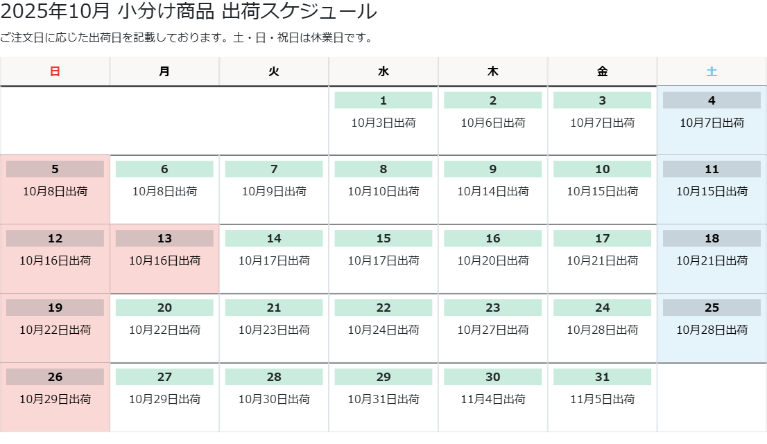 土曜・日曜・祝日のご注文 | 翌々営業日出荷 |