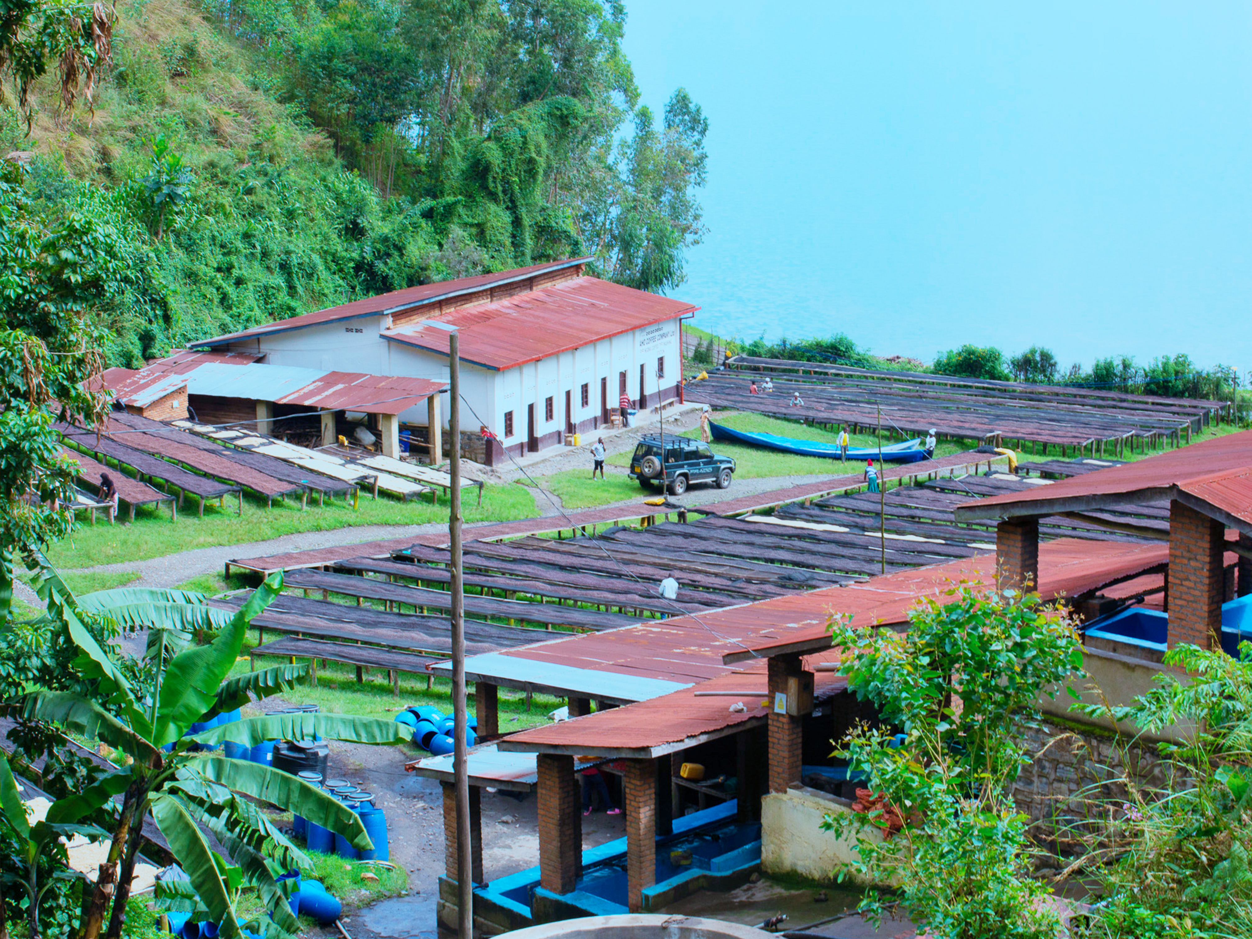 アフリカ大陸の中心に位置する内陸国のルワンダ。「千の丘の国」と称される、丘陵地帯です。緑の大地に、丘が幾重にも連なる景色が広がっています。1994年に起きたジェノサイド。その後の復興と振興を目指し、政府が力を入れたのが、コーヒー生産でした。2000年代に入ると、高品質なコーヒーの生産を目的に、主にアメリカの支援により南部県を中心にウォッシングステーションの建設が広がっていきました。各家庭で収穫から精製加工を行い、庭先で乾燥させるのが主流だったそれまでの生産方法から、地域ごとにあるウォッシングステーションでコーヒーチェリーを収集し、精製加工を行うようになりました。こうして一括して品質管理ができるようになったことで、品質の向上へとつながりました。