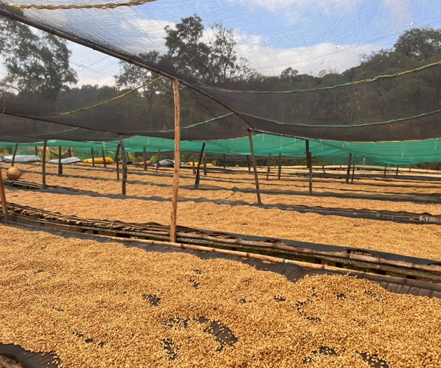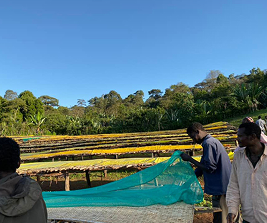 グジは首都アディス・アベバから、イルガチェフェまで南に400km(車で7~8時間)、さらにイルガチェフェから南東80kmあたりへ行ったところに位置します。日中25~6℃、低い時は5℃くらいまで下がります。標高は1,800~2,200m。朝は雲海が広がっており、とても幻想的な光景が広がります。標高が高く寒暖差が大きいため、コーヒーはゆっくりと育ちしっかりと甘さが詰まっていきます。 芳醇でフルーティーな味わいを持ち、香り高いアロマが特徴です。基本的にコーヒーはセミフォレストで育てており、放牧されている牛やヤギがそこら中にいて、土はフカフカ。