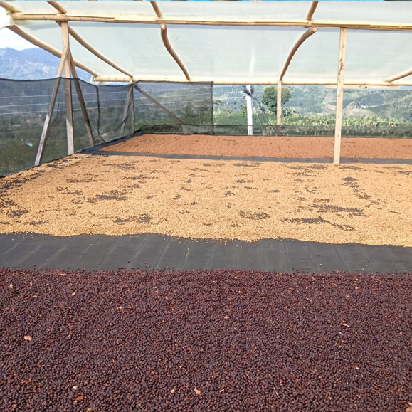 ブエノスアイレス農園は、20年前にパルマル・デ・クリオリョ村ではじまった家族経営の農園です。現在は2代目JohannyGonzálezさんを中心に地域の農家と連携し、品質向上や市場アクセスの拡大を積極的に行っています。農園は標高1,750~1,800メートルの高地で、カツーラ、カスティージョ、ゲイシャなどを栽培していますが、特にゲイシャ種の品質向上に力を入れています。またナチュラルプロセスによるフルーティーで甘みのある風味が特徴で、ゲイシャ品のロットは、国際的なカッピングコンテストでも高評価を得ています。品質向上だけではなく、持続可能な農法も重視しています。アグロフォレストリーに取り組み、農薬を最小限にする努力も行い、近隣の生産者さんたちに対しても環境に配慮したコーヒー生産方法を積極的に推進しています。
