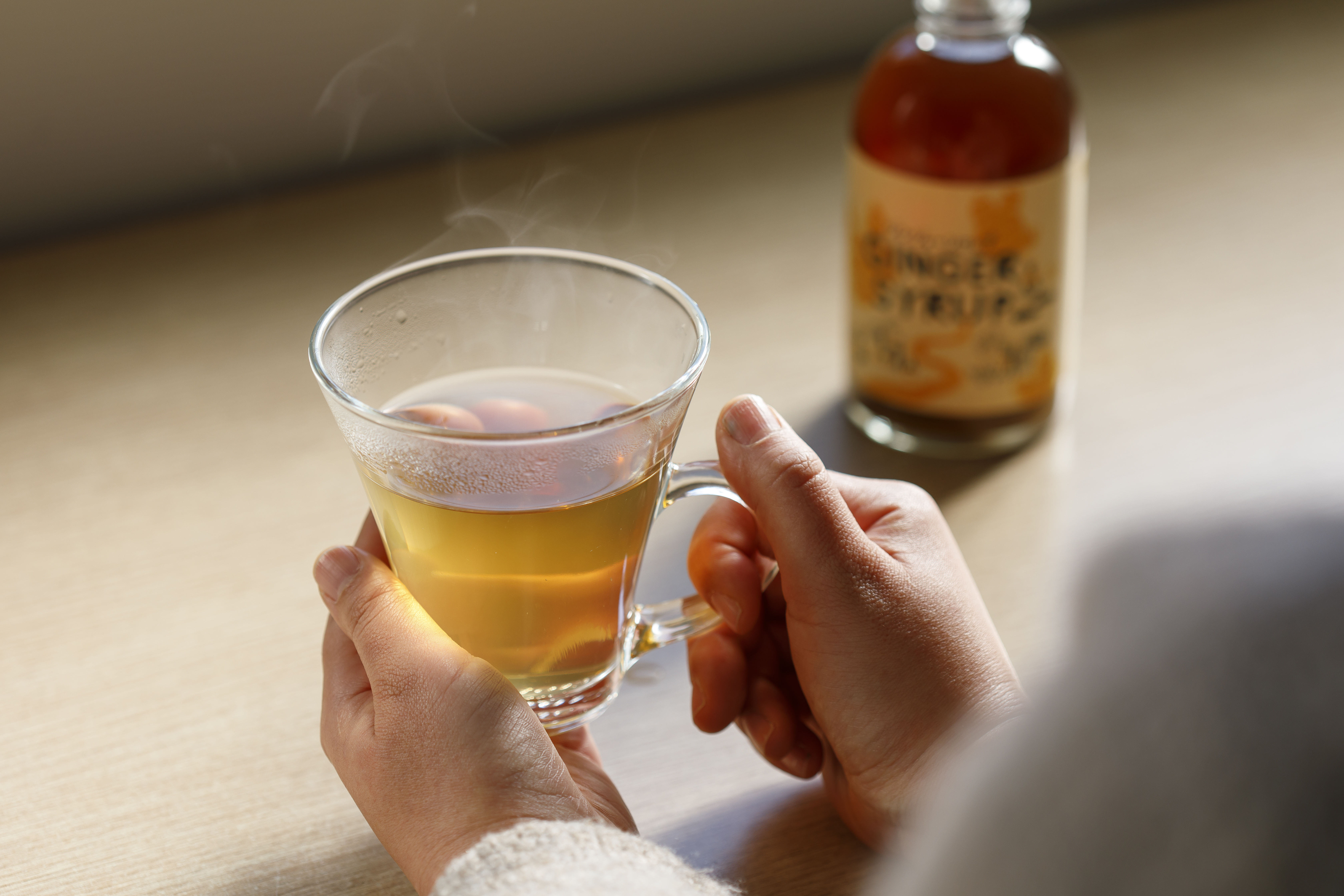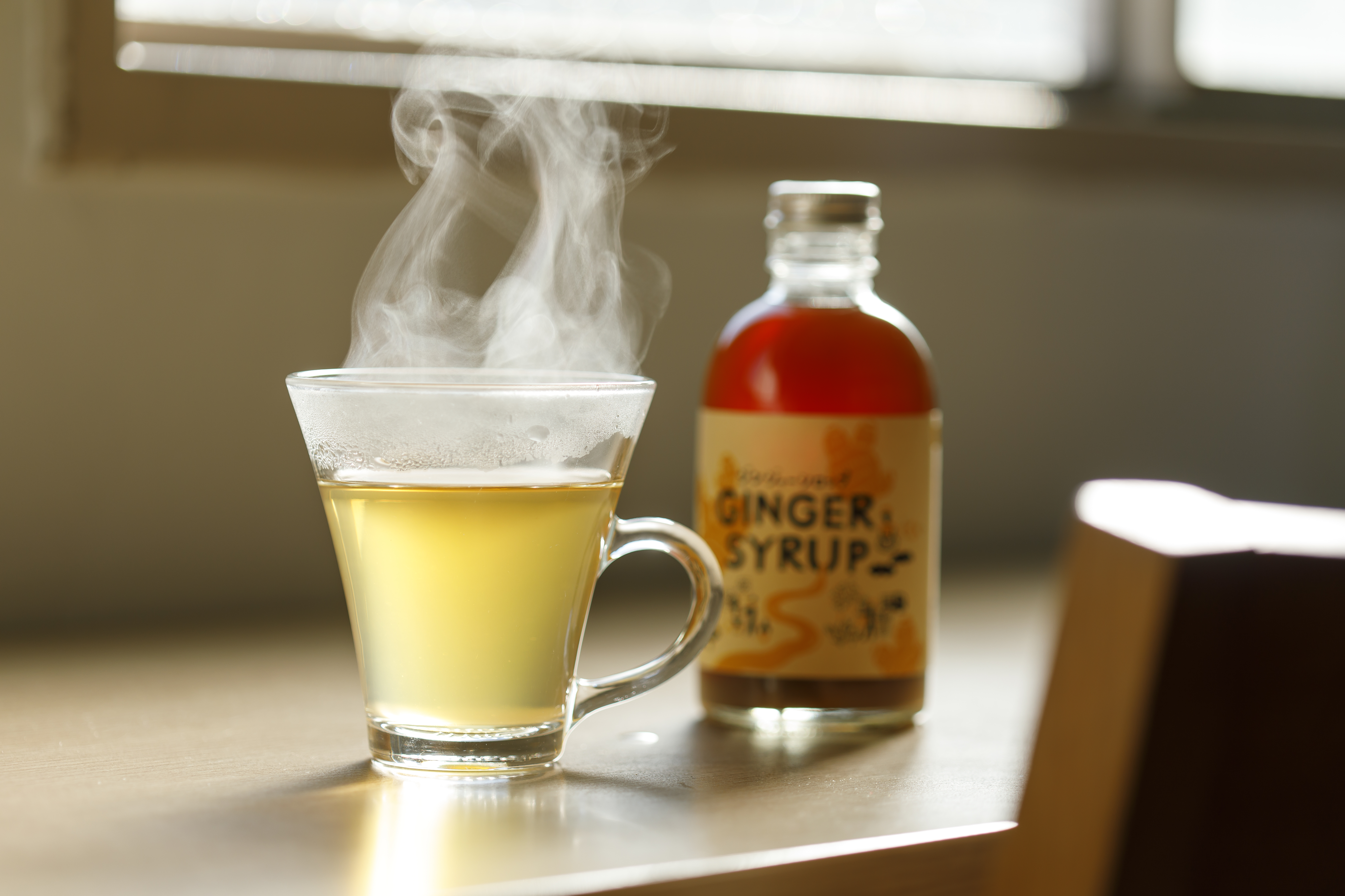 1)コップにジンジャーシロップ(大さじ1)を入れ、温めた牛乳(または豆乳)を注ぎます。